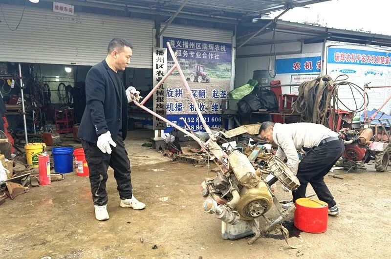 一大早,播州区刘瑞祥农机维修中心负责人潘吉勇便为前来办理农机报废补贴的群众代办申请事项,在回收过程中,他都要仔细检查老旧农业机械状况,核对机械型号、购买年限等信息,严格按照相关标准办理手续,并将报废的农机进行分解处理,整个流程下来拆解一台微耕机大概半个小时。