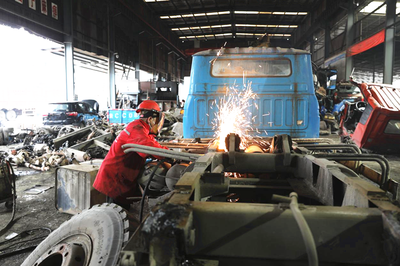 遵义市四丰报废汽车回收有限责任公司现场管理人员夏金说:“目前我们的回收方式,基本都是农户自己送来的比较多,回收单价这几天是1650元每吨。”