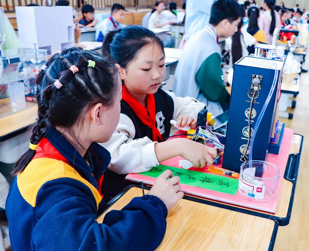 在当天举行的竞技类项目上,同学们化身“小小科学家”,在各个比赛项目中大展身手。一个个创意无限的作品在指尖流淌,编织创造出奇妙的科技世界。他们一起合作,大胆尝试,反复验证……每一个比赛项目都勾勒出孩子们对未来科技的奇思妙想。